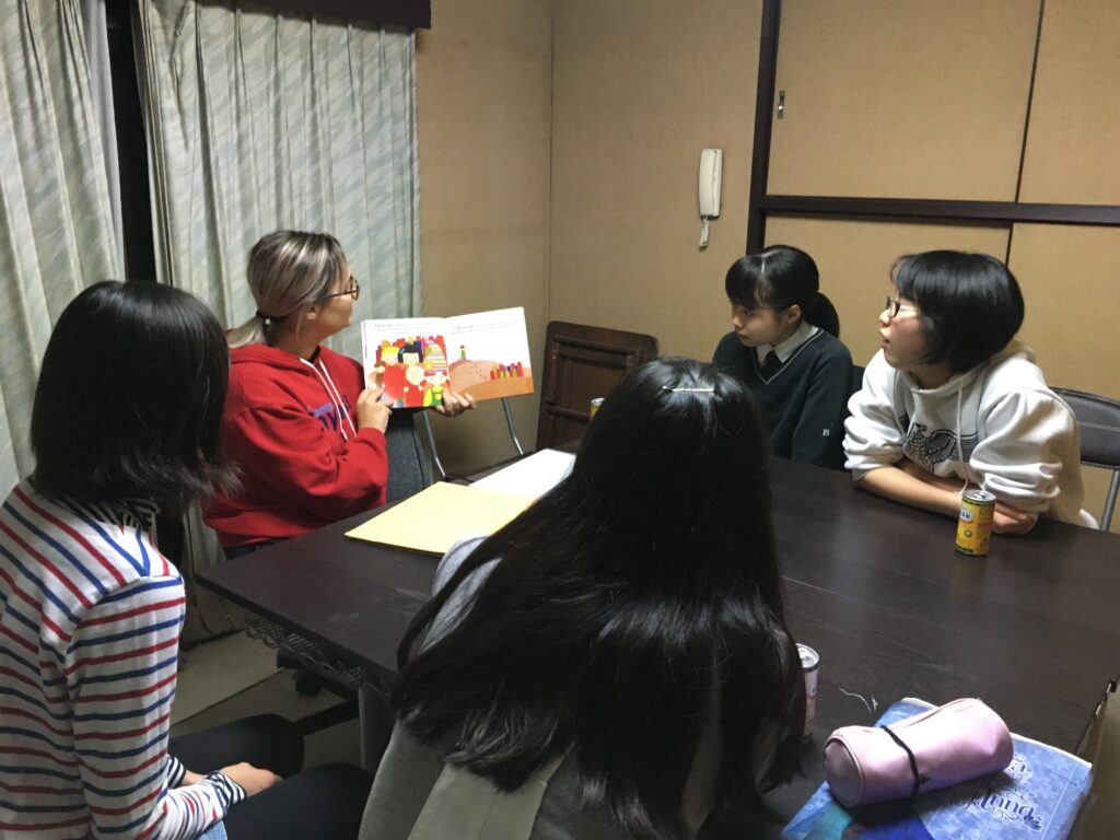 時には、インターンシップ制度を利用して来日中の米国大学生がレッスンに参加してくれて、ネイティブのおしゃべりを聞かせたり、ゲームを一緒にしたりします。